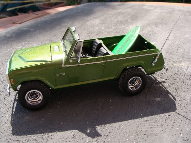 Don't know why I was sure to post this finished model here on the SAE Forum but seems that I forgot too.... So as Moparmodeler ask for it, here are some pics of the Jeep I finished last year, my project was to build a kind of "Beach cruiser", wheels and tires are from the AMT 70ies Blazer, as the one from the box seems too big for me. A very detailed kit from MPC with a V6 which is knid of change of the V8 I usually build.